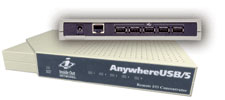 このイーサネットを使用したAnywhereUSBでは、5つのUSBポートを提供し、オンボードUSBポートと同様に簡単にご利用いただけます。AnywhereUSBソフトウェアドライバは、ホストのPCまたはサーバー上にダウンロードされ、周辺装置はホストと遠隔通信することができ、その際既存のアプリケーションソフトの変更は必要ありません。周辺装置はIPアドレス経由で遠隔のサーバーまたはPCから集中管理されます。